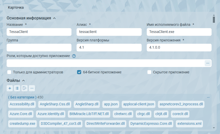 При необходимости опубликованные приложения можно сгруппировать (для удобства отображения в Tessa Applications).