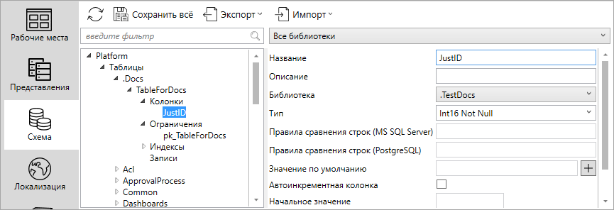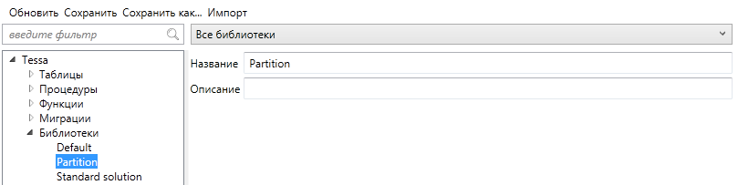 После создания библиотеки объекты схемы можно перенести в неё: таблицы, колонки, записи, функции и т.д.: