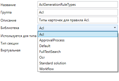 Значение в столбце Тип в карточках определяет, какой тип колонка будет иметь в метаинформации карточек, а именно в перечислении CardMetadataRuntimeType. По нему можно определить, что в структуре карточек некоторые поля секций, связанные с колонками, будут иметь одинаковые типы и поведение, несмотря на физическое различие в способе хранения в БД.