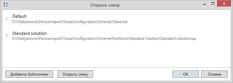 Появится диалог выбора основного файла структуры БД формата tsd. После выбора файла откроется окно с информацией по связанным со схемой библиотекам.