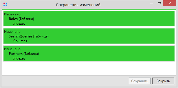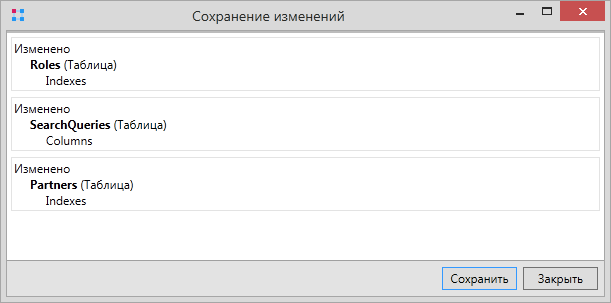 В появившемся диалоговом окне будет отображен список изменений. Чтобы подтвердить изменения, нужно нажать Сохранить.