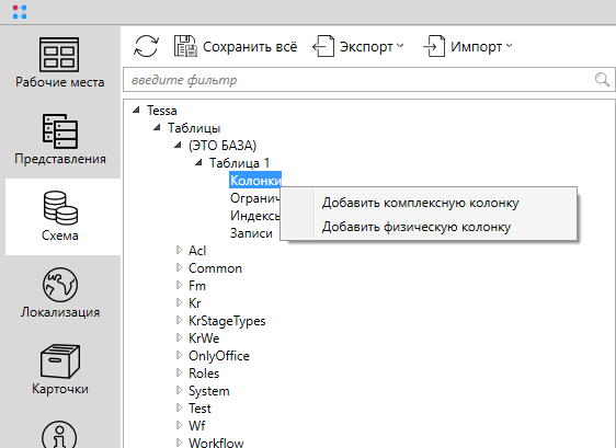 | Добавить колонку в выделенную таблицу | Добавить физическую колонку | Колонки |
