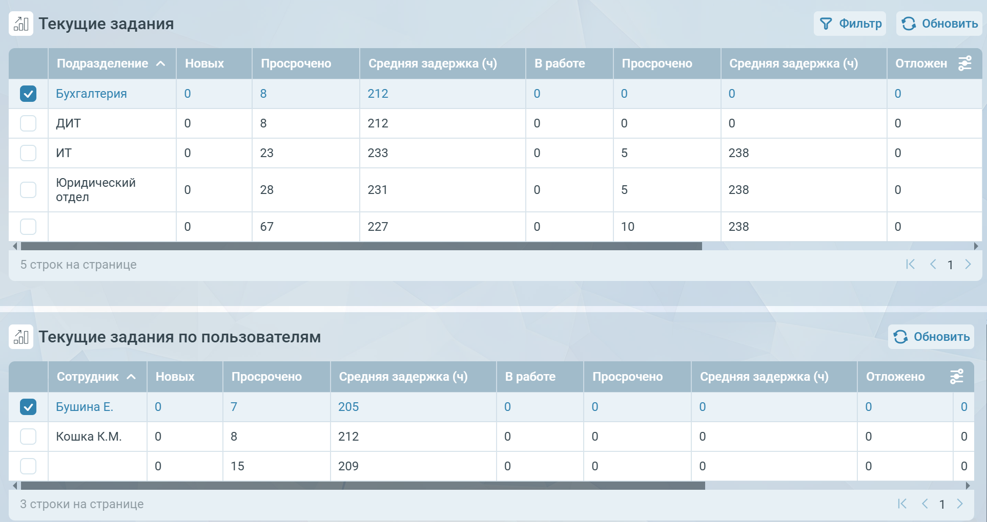 Отчеты в TESSA можно отображать в виде диаграмм. В типовом решении преднастроено два таких отчета: Просроченные задания и Текущие задания.