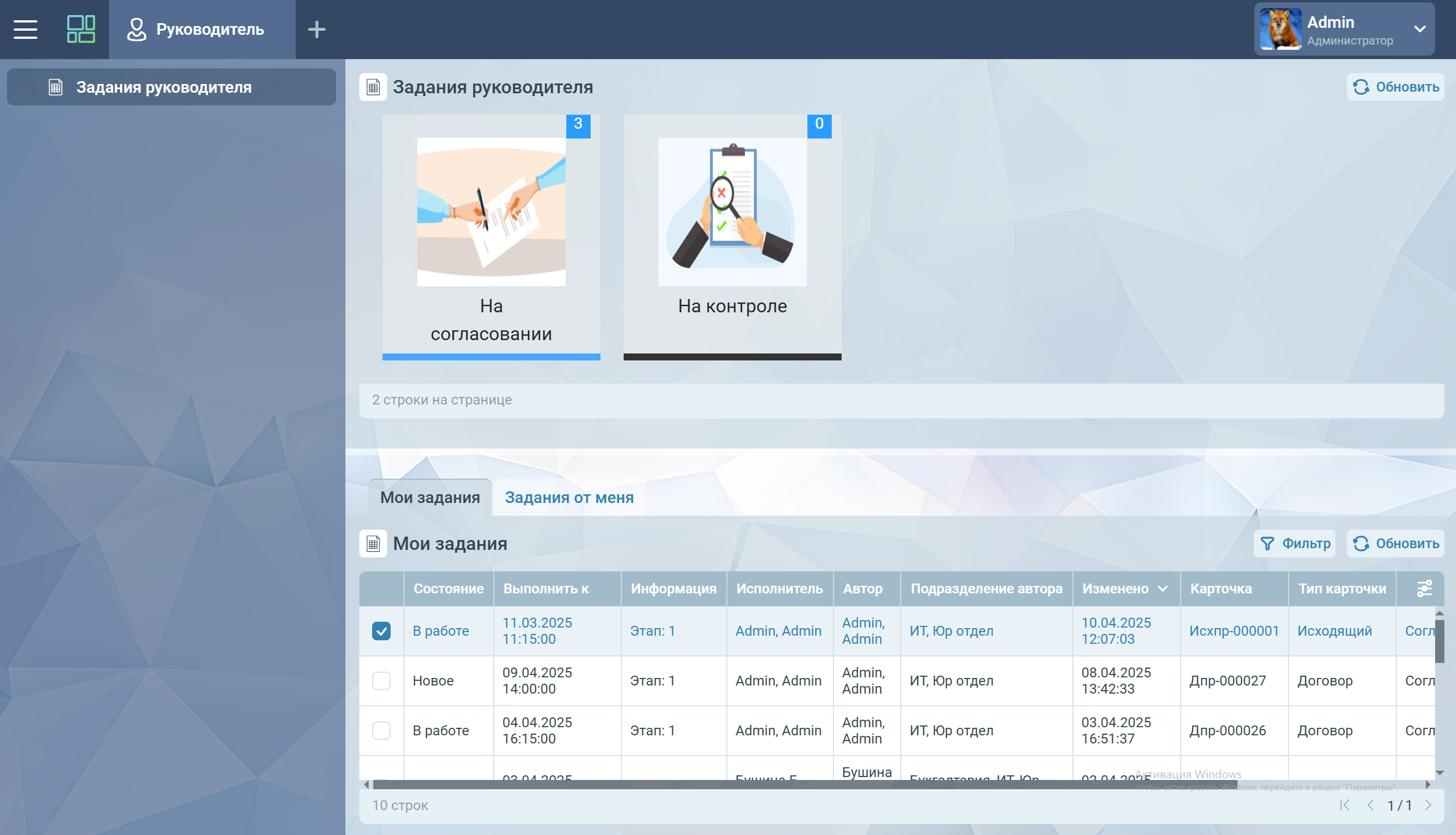Если перейти в представление Сотрудники в рабочем месте Администратор (где добавлено это расширение), то при открытии карточки будет отображён её стандартный вид. При этом, если открыть запись из ссылочного контрола, то будет отображён интерфейс формы, настроенной в конструкторе форм.