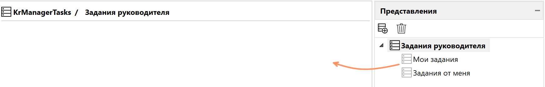 Список рабочих мест расположен в левой части раздела, в нем можно настроить представления, которые будут отображаться на определенном рабочем месте.