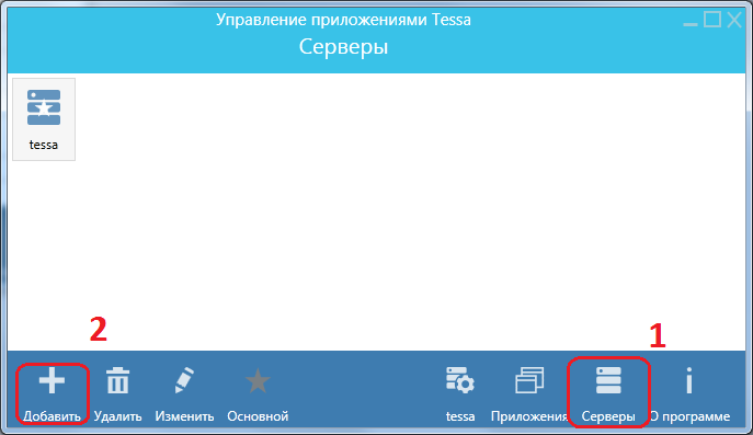 Tessa Applicationsперейти на вкладку Сервер и нажать на кнопку Добавить: