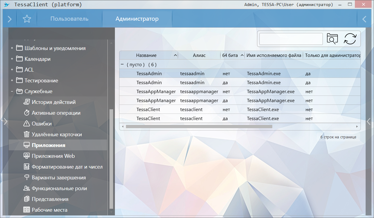 В результате в Tessa Applications вы увидите опубликованные приложения: