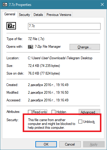 В таком случае в окне свойств файла будет флаг