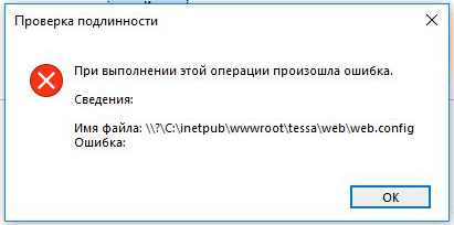 Ошибка “При выполнении операции произошла ошибка. Имя файла \?С:\inetpub\wwwroot\tessa\web\web.config”¶