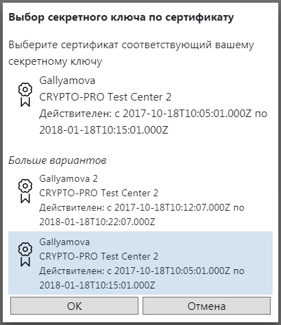 При нажатии на него откроется окно для выбора ключа, которым необходимо подписать данный файл: