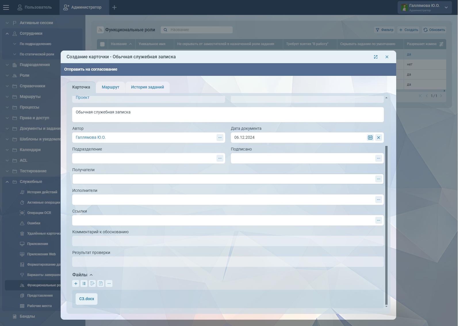 Как подключить подсистему маршрутов для типа карточки/типа документа описано в разделе Использование маршрутов.