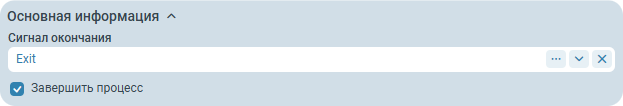 Сигнал окончания - тип сигнала, который отправляется на все подписанные процессы. Значение можно ввести вручную или выбрать из справочника.