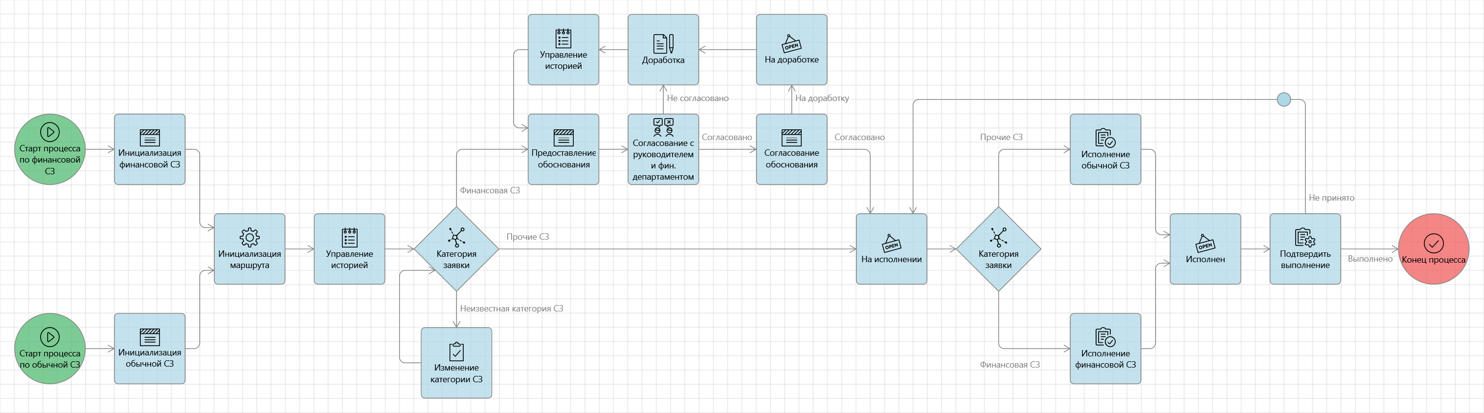 | Старт процесса по финансовой СЗ, Старт процесса по обычной СЗ | Старт процесса |