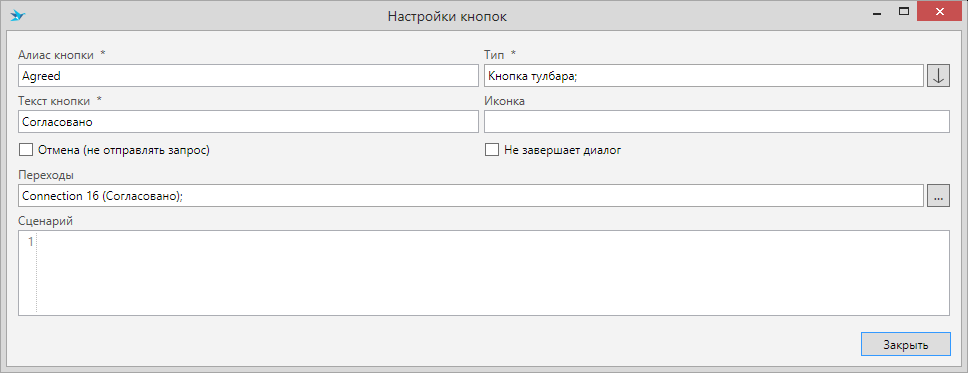 Кнопка “Отправить”, у обоих диалогов, настроена идентично: