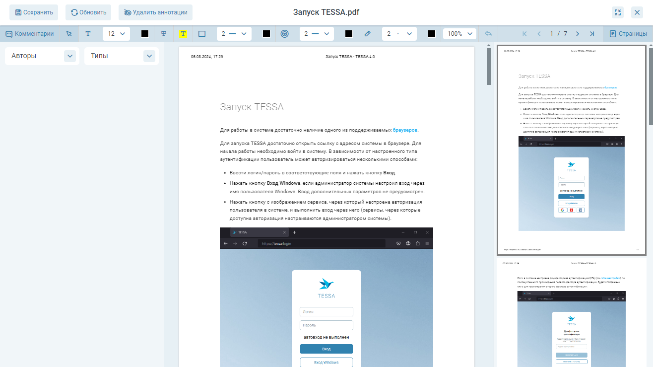 Если нет прав на редактирование pdf-файла, но есть права на его чтение, то будет доступна только функциональность аннотаций (но не проставление факсимиле и штампов). При этом в диалоговом окне работы с аннотациями будут видны все аннотации и комментарии, но без возможности их редактирования и участия в обсуждении аннотаций.