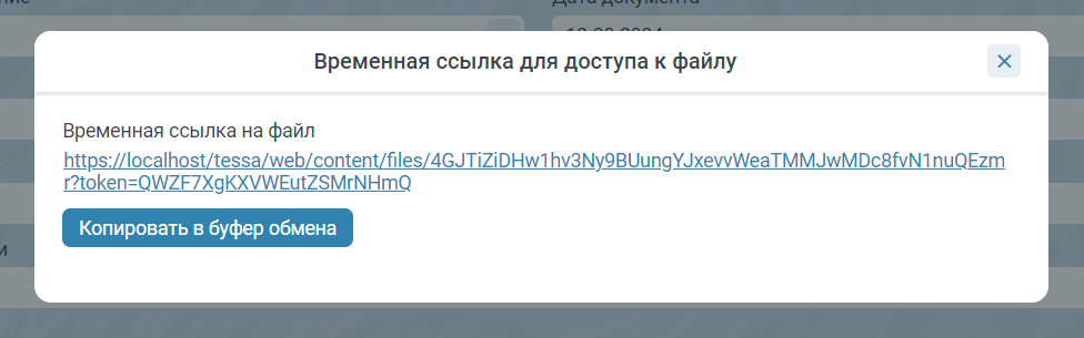 Для того чтобы получить ссылку на файл, нужно воспользоваться пунктом Копировать ссылку контекстного меню файла. Ссылка на файл в формате https:// будет скопирована в буфер обмена. Скачать файл может только авторизованный пользователь, обладающий соответствующими правами доступа. При переходе по ссылке, если пользователь уже авторизован в системе, то автоматически будет скачан нужный файл. Если авторизованных пользователей нет, то появится окно аутентификации, после прохождения которой будет автоматически скачан нужный файл и открыта карточка, к которой он был прикреплен (при наличии соответствующих прав доступа).