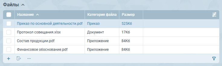 Для просмотра файла в области предпросмотра (если таковая имеется в карточке) достаточно выбрать файл в списке файлов, нажав левой кнопкой мыши по нему один раз. Открытый для предпросмотра файл будет выделен в списке файлов.