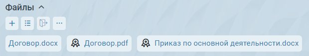 используются для быстрой навигации между файлами, добавленными в карточку. Открыв один из файлов в режиме предпросмотра можно при помощи кнопок пролистать остальные файлы, оставаясь в режиме предпросмотра. При этом файл, открытый в данный момент, будет выделен в списке файлов в левой области карточки.